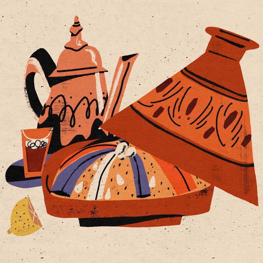 “I often include elements from my own happy travel memories,” she says. “I added some simple animation to these illustrations for digital use, and that’s always a fun challenge. I particularly enjoyed animating the little fish flag in the Japanese grocery travel trend.”